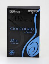 90 grζάχαρη από ζαχαροκάλαμο, βούτυρο κακάο, πλήρες γάλα σε σκόνη, κακαόμαζα, γαλακτωματοποιητής: λεκιθίνη σόγιας μη γενετικά τροποποιημένη, φυσική βανίλια, 35% κακάο